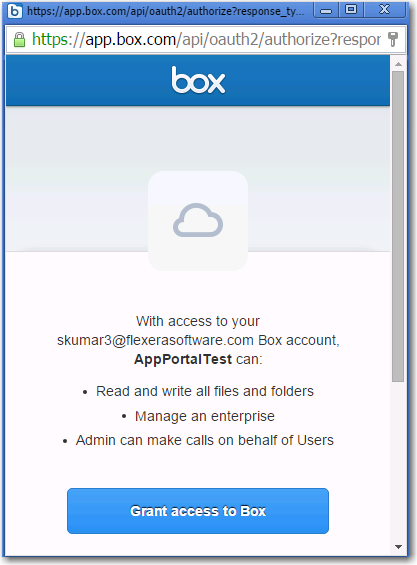 Click OK on the dialog box. A web page opens where you will be prompted to grant access to the cloud application.