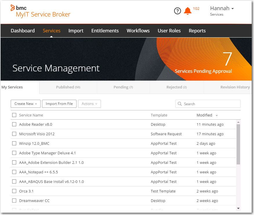 - Click  Queue for Import  and observe that the status of the selected catalog item will be updated to  Queued . Catalog items are imported from App Portal into BMC MyIT. Queue for import means that the catalog items are ready to be imported into BMC.