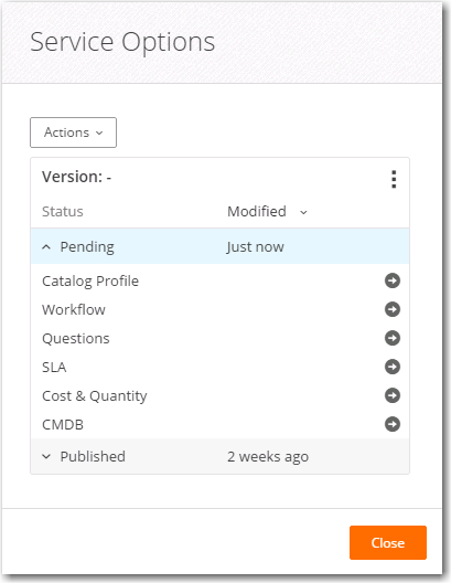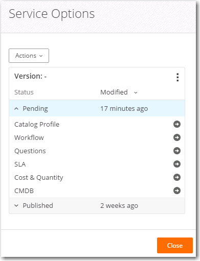 - Double-click on a catalog item, such as  Adobe Reader v8.0 . The   Service Options   view opens.
