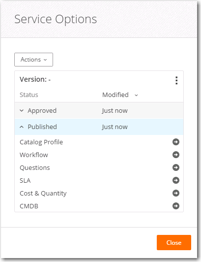 - From the  Actions  menu, select  Approve & Publish . The   Status   for  Approved  and  Published  is updated to  Just now .
