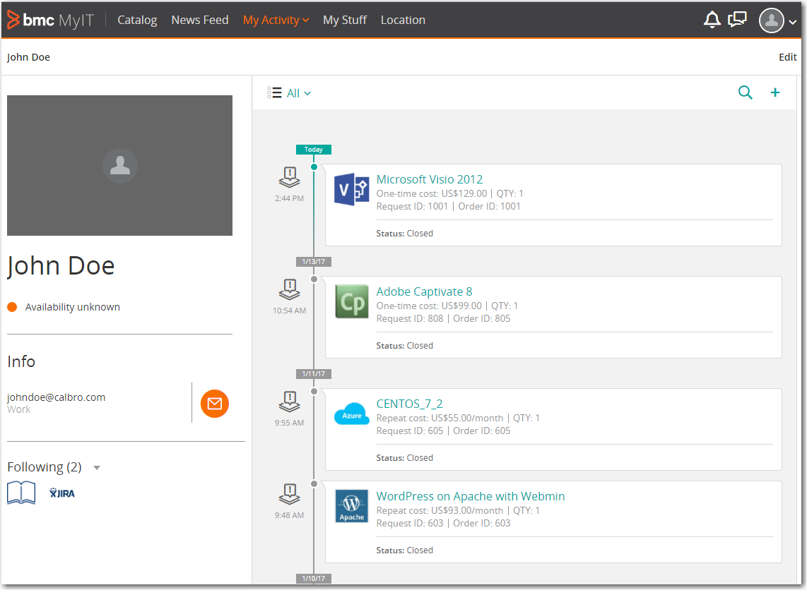 - Click on  My Activity > All activity . The request that you just completed is listed.