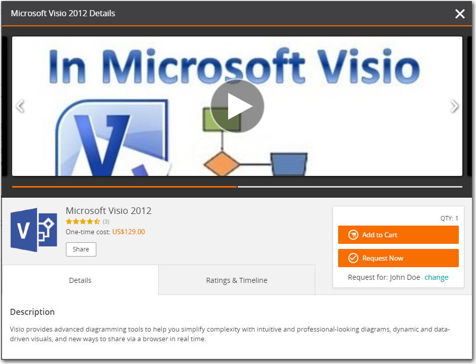 - Click on the catalog item that you want to request. Detailed information about that catalog item is listed.