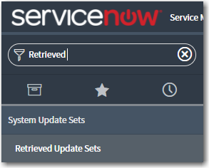 4. In the search results, click Retrieved Update Sets . The Retrieved Update Sets page opens.