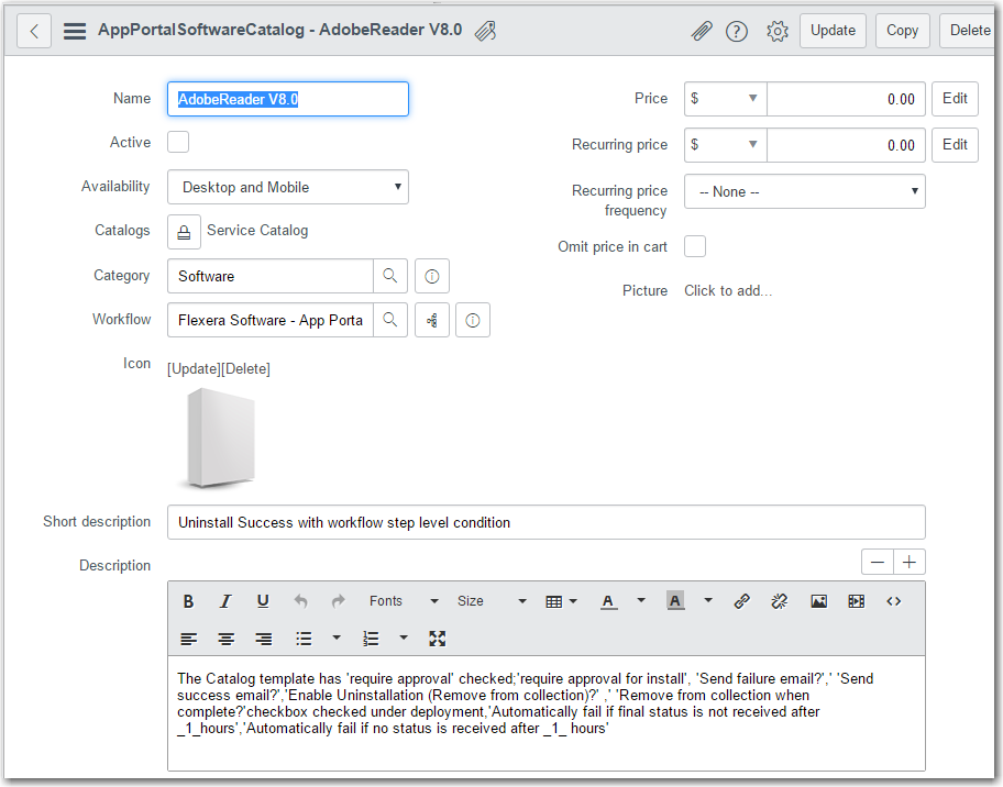 - Click on the name of the catalog item that you want to edit. The edit view of the catalog item opens.