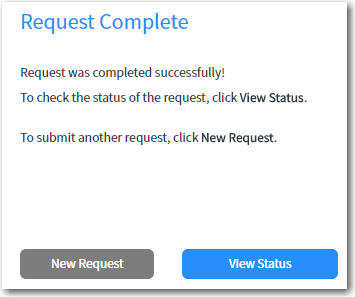 18. Click View Status to open the Request Status page, which lists the status for all submitted requests. For more information, see Viewing Request Status.