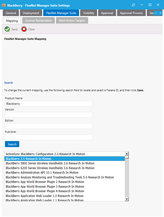 Open the FlexNet Manager Suite Settings > Mapping tab.